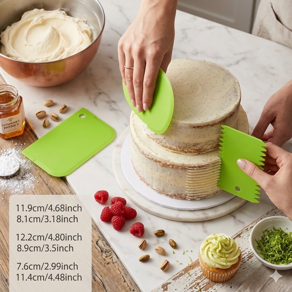 This set includes three different scraper designs, allowing you to experiment with various patterns and finishes. Made from high-quality, food-grade plastic, these scrapers are durable, lightweight, and easy to handle, making them ideal for everyday baking use.
