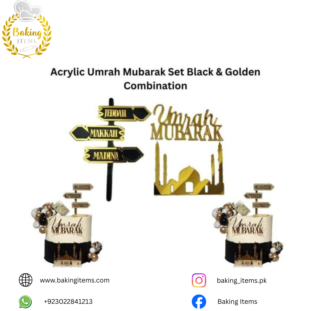 Make your Umrah celebrations special and memorable with the Acrylic Umrah Mubarak Topper Set!