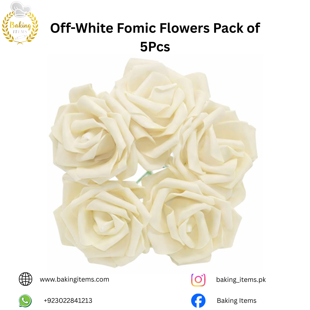 Add a soft and elegant touch to your creations with our Off-White Fomic Flowers. Made from premium-quality fomic material, these flowers are lightweight, durable, and easy to use. The subtle off-white shade makes them perfect for classy cake decorations, DIY crafts, scrapbooking, gift packaging, and home décor projects.