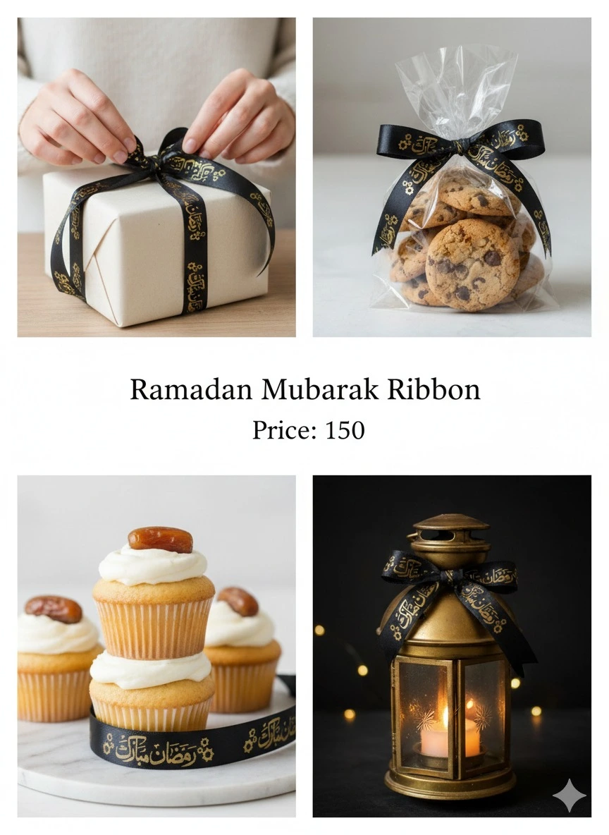 • Premium black ribbon with “Ramadan Mubarak” print