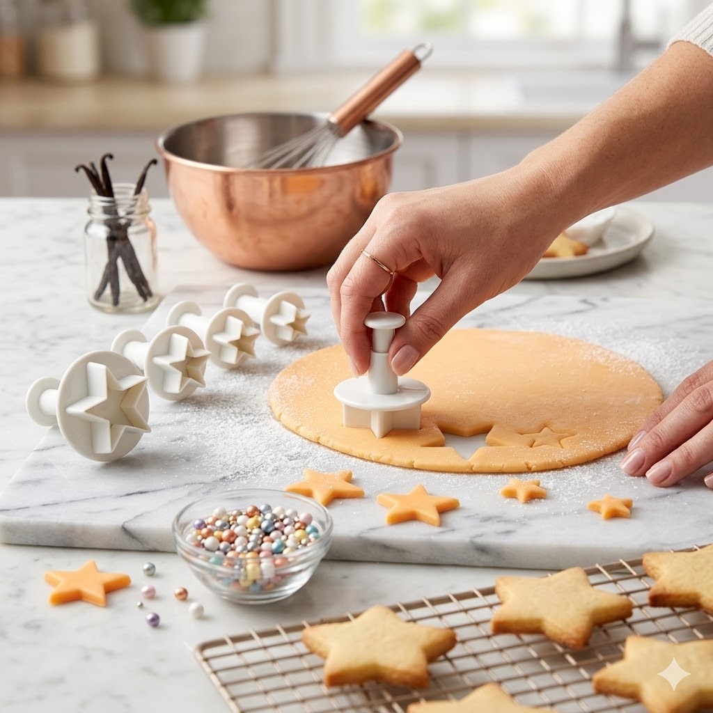 Each cutter features a built-in plunger system that not only cuts the star shape but also embosses fine details, giving your decorations a clean and professional finish. Ideal for birthday cakes, kids’ themes, celebrations, and festive baking.